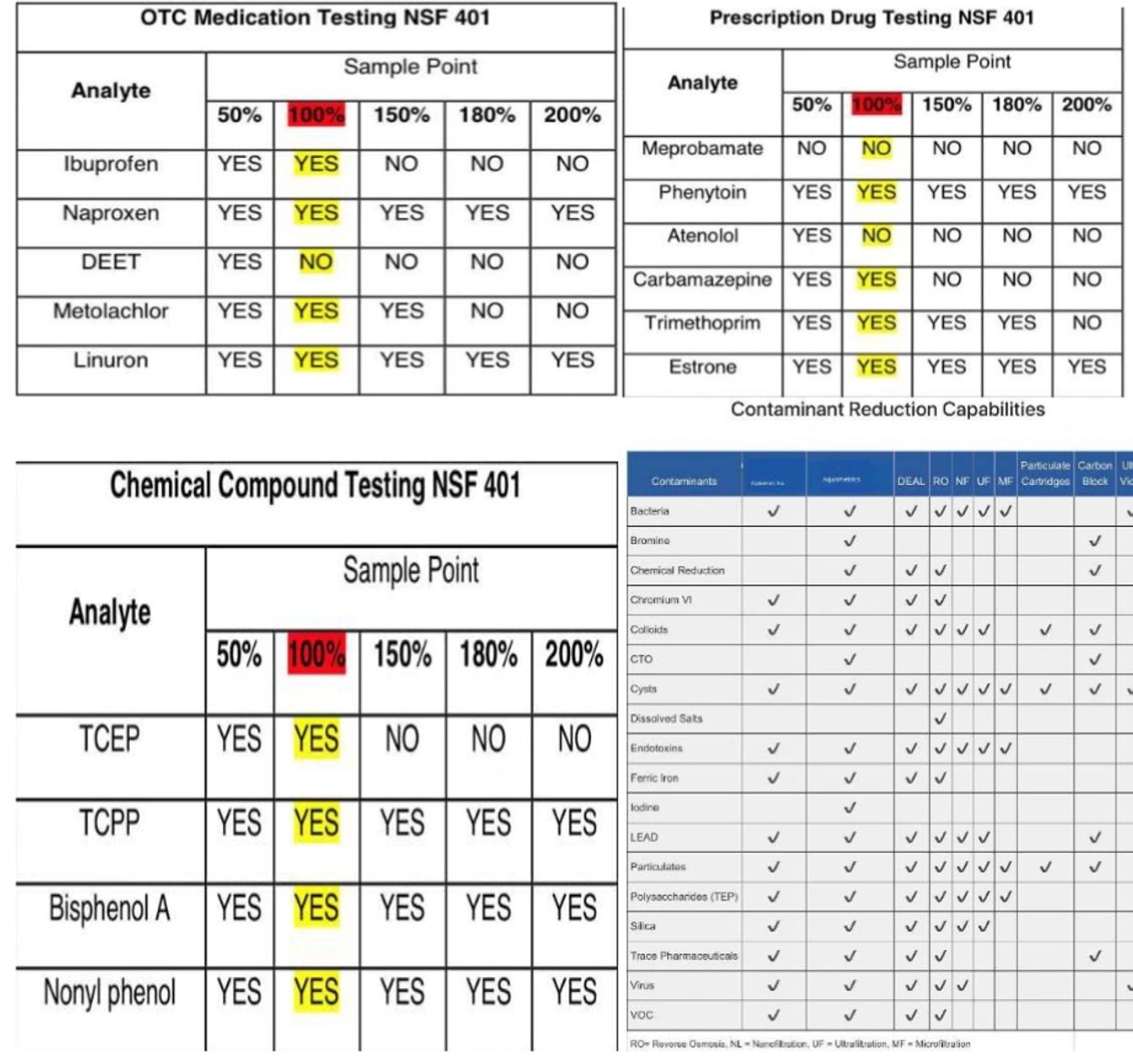 Independent testing has shown filter media to reduce MS2 virus at more than 99.99%. It can reduce a wide range of bacteria at more than 99.9999%, including E. coli, Pseudomonas and Legionella. Removal of three-micron spheres (as a surrogate for cryptosporidium) is more than 99.95% efficient. Media has been proven to reduce certain by species of colloidal metals, hazardous compounds such as PCBs and trace pharmaceuticals including BPA, a known hormone inhibitor.