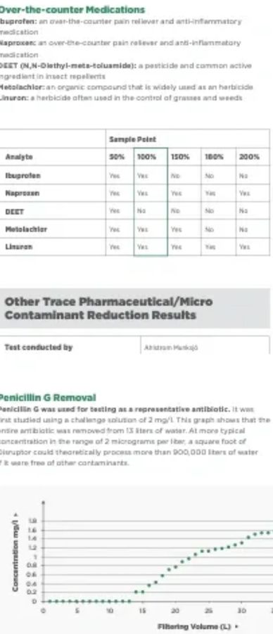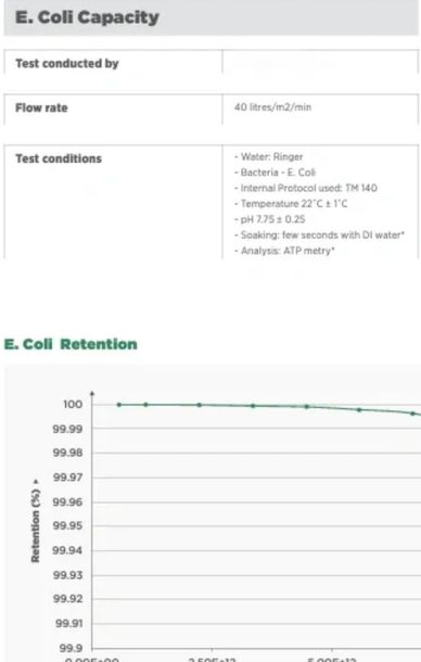 Independent testing has shown filter media to reduce MS2 virus at more than 99.99%. It can reduce a wide range of bacteria at more than 99.9999%, including E. coli, Pseudomonas and Legionella.